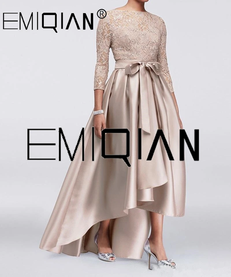 Champgne Plus Size Mother of The Bride Lace Dresses For Weddings Satin High Low Sashes Groom Godmother Dresses Gowns