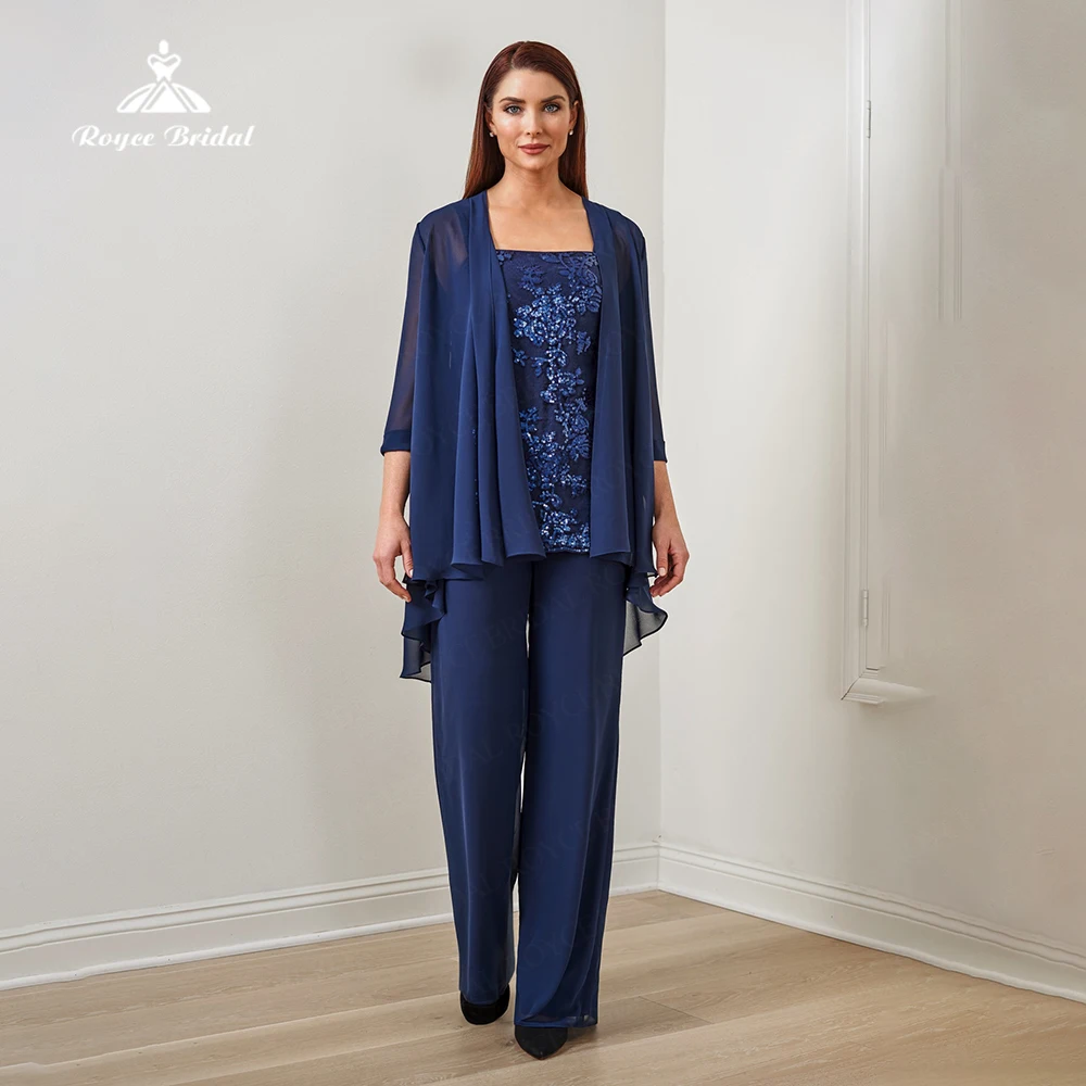 Charming Sequin Lace 3-Piece Mother of the Bridal Dresses with Jacket 3/4 sleeves Mother’s Dresses For Prom Party Evening Gowns