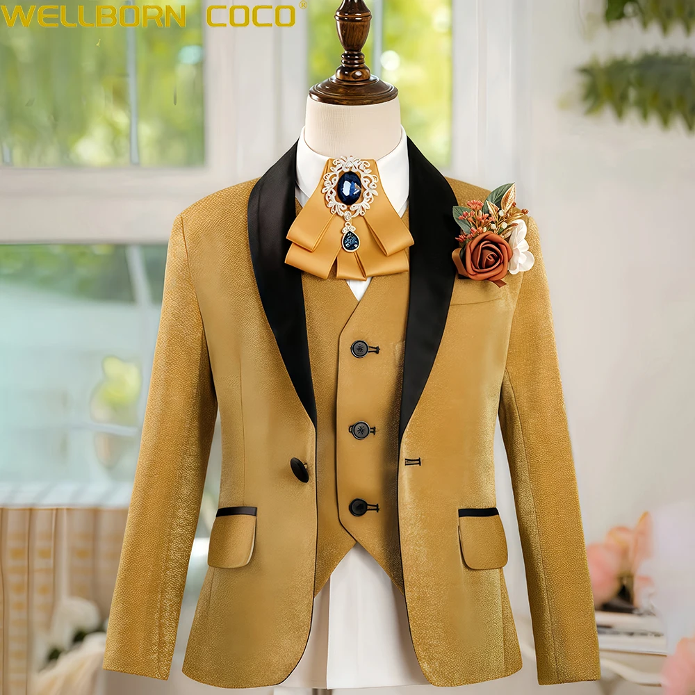 Children’s Suit Set Gold Silver Sparkling Boy’s Evening Dress Stage Costume Formal Pageant Dresses Suit For Boys Party Dresses