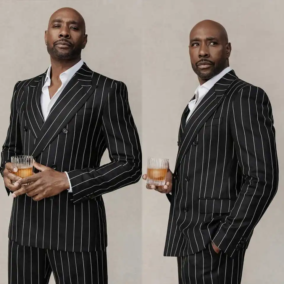 Classic Fit Pinstripe Wedding Tuxedos 2 Piece Set Jacket Pants Double Breasted Men Suit Customized Groom Wear Party Suits