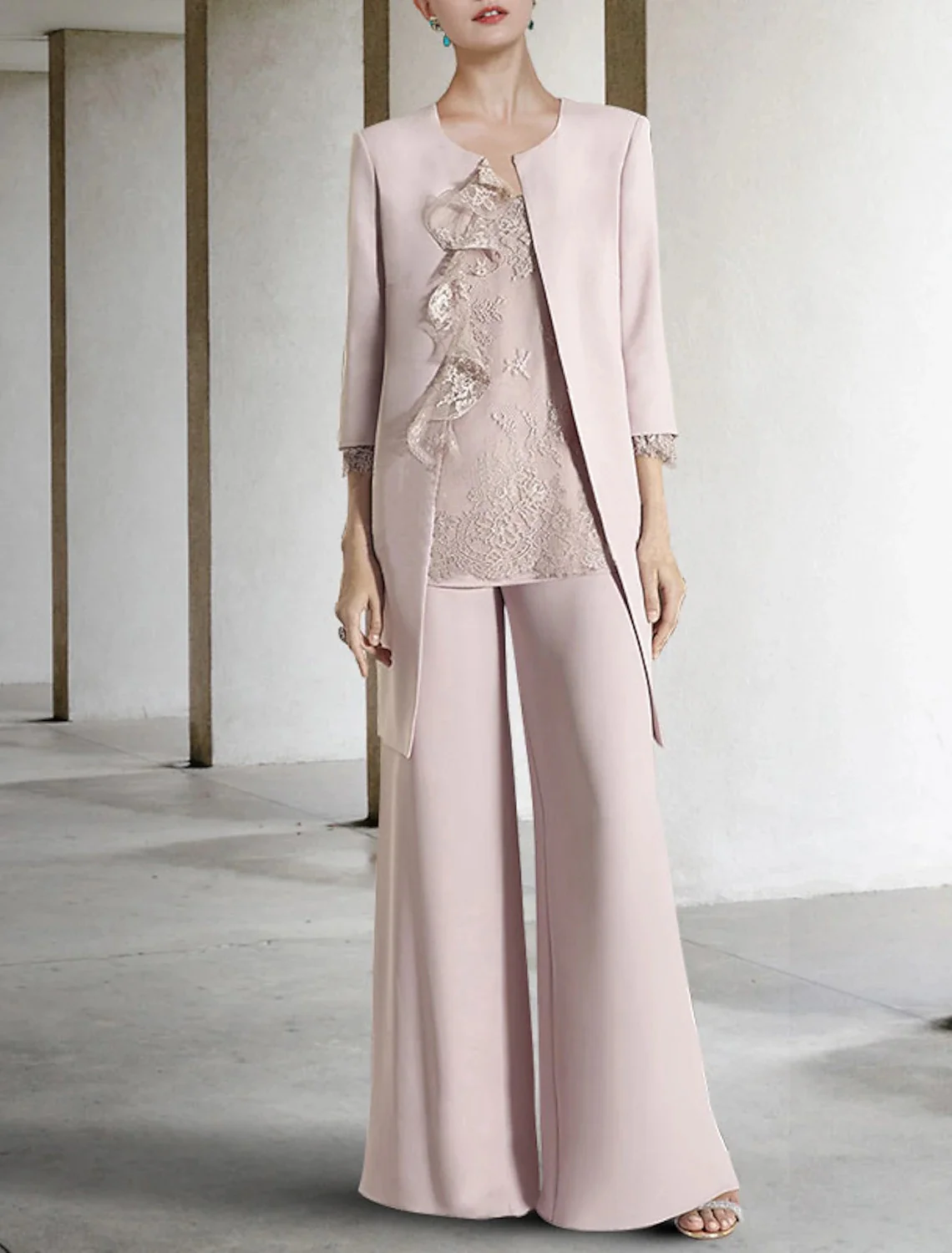 Classic Jumpsuit / Pantsuit 3 Piece Mother of the Bride Groom Dress Wedding Guests Chiffon Lace Sleeveless Ruffles Customized