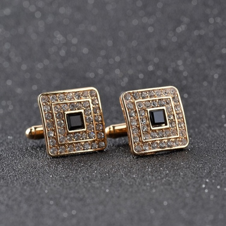 Classic Luxury Rhinestone Crystal Square Custom Enamel Men’s Cufflinks for French Shirts, Wedding Jewelry