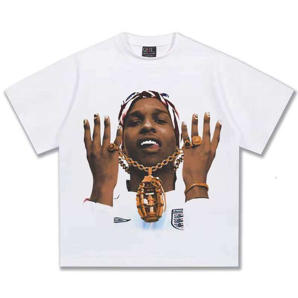 Clothing Manufacturer Plus Size Printed Letter Asasprocky 100% Cotton Short Sleeve 300g Crew Neck T-Shirt