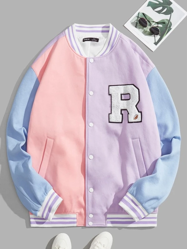 Description: Colorblock Letter Patched Varsity Jacket – Men’s – Statement Style Embrace effortless cool and undeniable style with this meticulously crafted Colorblock Varsity Jacket, designed for the modern man who appreciates quality and a touch of bold personality. This jacket isn’t just clothing; it’s a statement piece that effortlessly blends classic elements with contemporary flair. Design & Construction: The core of this jacket is a premium, durable, and breathable Oxford cotton fabric. The colorblock design utilizes a sophisticated interplay of vibrant, contrasting colors – a deep charcoal grey accented with a rich sapphire blue – creating a visually dynamic and captivating effect. The color palette is carefully considered, offering a subtle yet impactful aesthetic that’s both sophisticated and adaptable to various occasions. Subtle, strategically placed letter patches, rendered in a warm, brushed silver, are embroidered across the chest and subtly etched onto the sleeves, adding a layer of unique detail and personality. These patches aren’t just decorative; they offer a subtle textural contrast and further enhance the jacket’s overall visual appeal. The jacket utilizes a double-layered construction – a comfortable inner lining and a robust outer shell – ensuring lasting quality and a flattering fit. Silhouette & Fit: This jacket boasts a slightly elongated, contemporary silhouette that’s remarkably versatile. It’s designed to comfortably drape and move with the wearer, avoiding the stiffness often associated with traditional varsity jackets. The jacket is tailored to a classic, slightly oversized fit that’s both stylish and relaxed. It’s not overly voluminous, allowing for a refined look while still projecting confidence. The length typically falls around the mid-thigh, providing a balanced and flattering appearance. The sleeves are a classic, rolled-up length, providing a touch of effortless cool. Features & Benefits: Colorblock Excellence: The unique colorblock design is a hallmark of this jacket, creating a visually striking and memorable look. Premium Fabric: The Oxford cotton is known for its durability, breathability, and excellent drape, ensuring a comfortable and long-lasting experience. Lettered Detail: The discreetly placed letter patches add a layer of personality and elevate the jacket’s overall aesthetic. They’re meticulously embroidered for a subtle and refined touch. Comfortable Fit: The jacket is engineered for a comfortable and flattering fit, prioritizing both style and wearability. Versatile Styling: The color and silhouette make this jacket suitable for a range of outfits – from casual everyday wear to more dressed-up looks. It can easily be paired with jeans, chinos, or a comfortable t-shirt. Durable Construction: The double-layered construction ensures long-lasting wear, making this jacket an investment piece. Layering Potential: The jacket can be easily layered with other pieces for a more polished look. Washability: The fabric is designed to withstand regular washing, making it easy to maintain and care for. Overall Impression: The Colorblock Letter Patched Varsity Jacket is more than just a jacket; it’s a sartorial statement. It combines classic style with contemporary flair, creating a look that’s both timeless and undeniably cool. It’s the perfect addition to any man’s wardrobe, offering a sophisticated blend of comfort, style, and personality. It’s a jacket designed to be cherished and worn with pride. Own a piece of this jacket’s captivating design – order yours today!