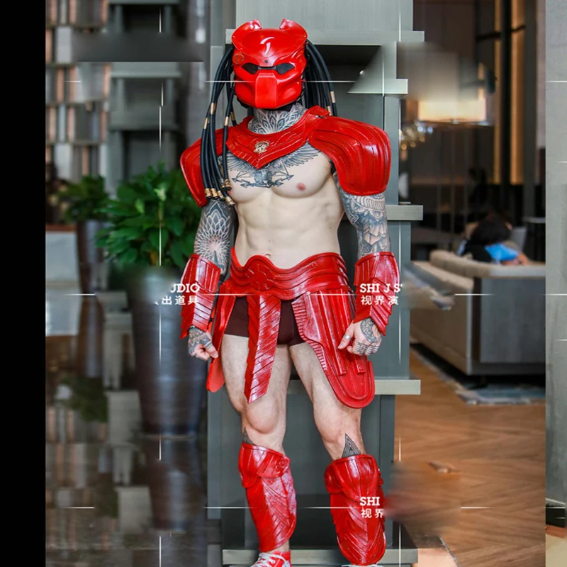 commercial muscle men’s clothing model costume Jagged warrior red armor cosplay bar halloween costumes