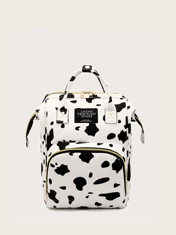 Cow Print Diaper Bag, Trendy Top Handle Backpack, Large Capacity Outdoor Mummy Bag