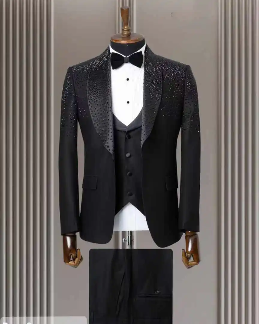Crystals Men Suit Set 2 Piece Blazer+Pants Trousers Luxury Shiny Wedding Tuxedos Formal Office Jacket Prom Coat Customized