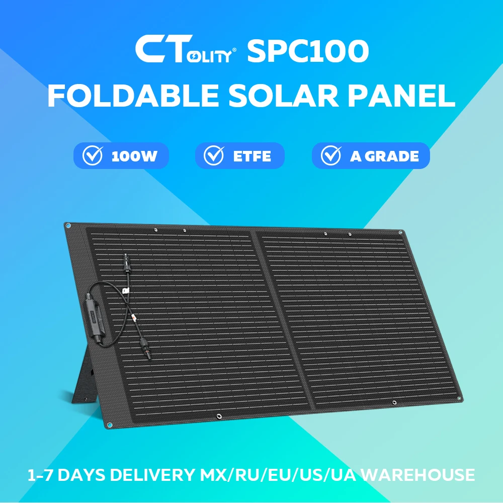 CTOLITY SPC100 100W Foldable Solar Panel A grade ETFE IP68 Waterproof High Efficiency 23% 20.5V Solar Generator 18AWG 2M RV Camp