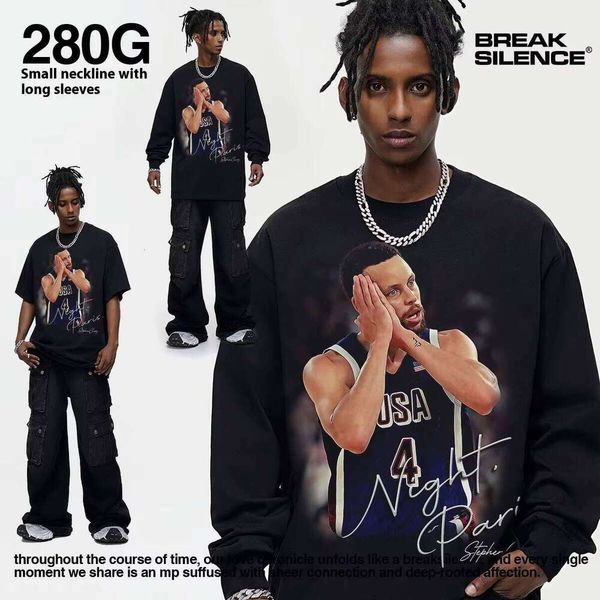 Curry Sleep Paris Goodnight 3D Printed Men's Short Sleeve T-Shirt American Street 280g Washed Heavy Knit 100% Cotton
