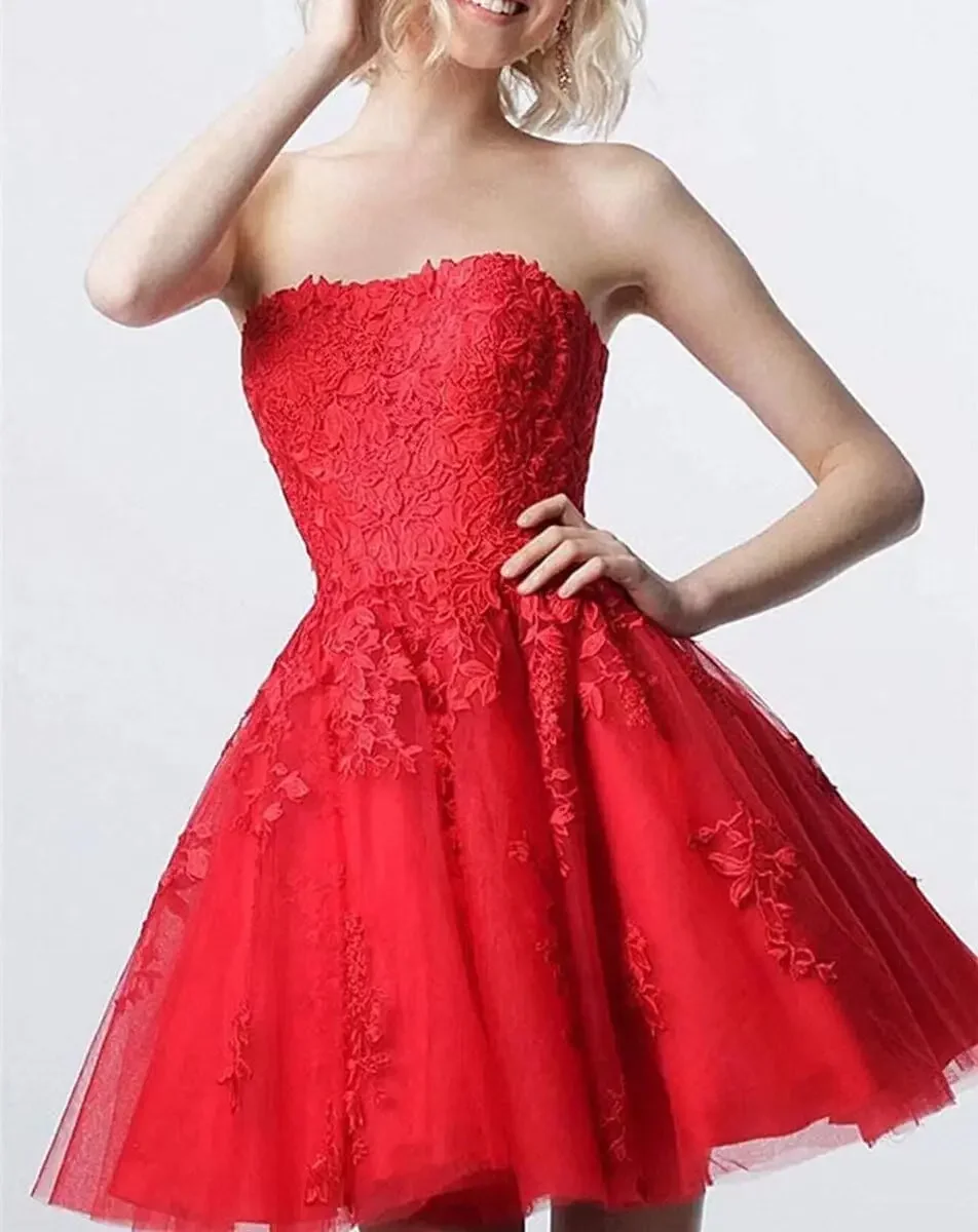Item: Custom Lace Homecoming Dresses Short A Line Strapless Formal Cocktail Party Gowns graduation dress prom dresses mini dress