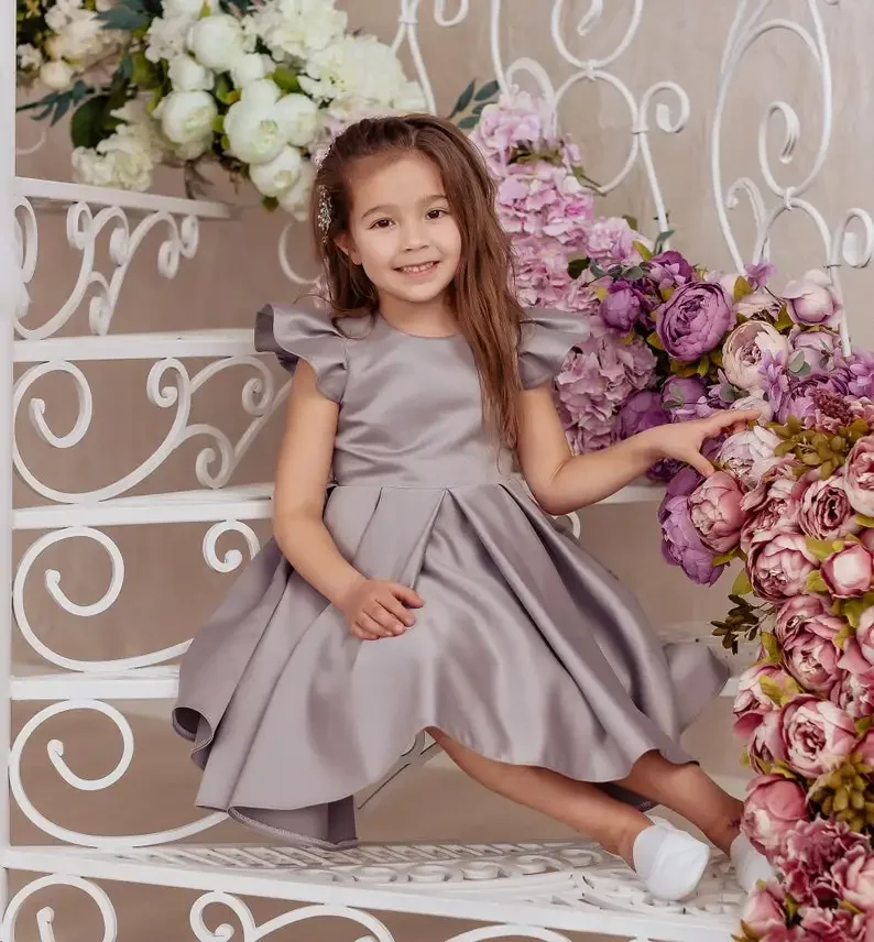 Custom Made Satin Flower Girl Dress Gray Flower Girls Dresses Satin Baby Dress First Communion Gowns 2025 Short Kids Gown