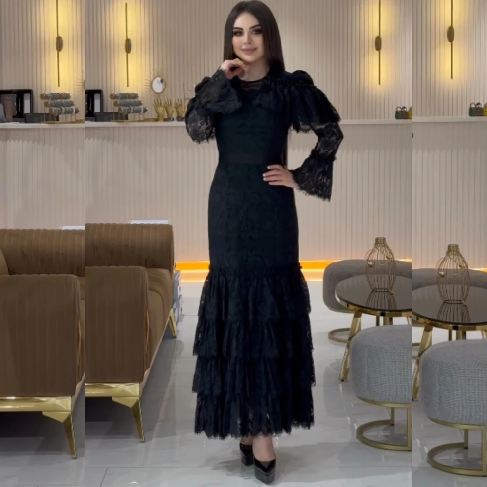Item: Customized Lace Pleat Evening Mermaid O-Neck Bespoke Occasion Gown Midi Dresses