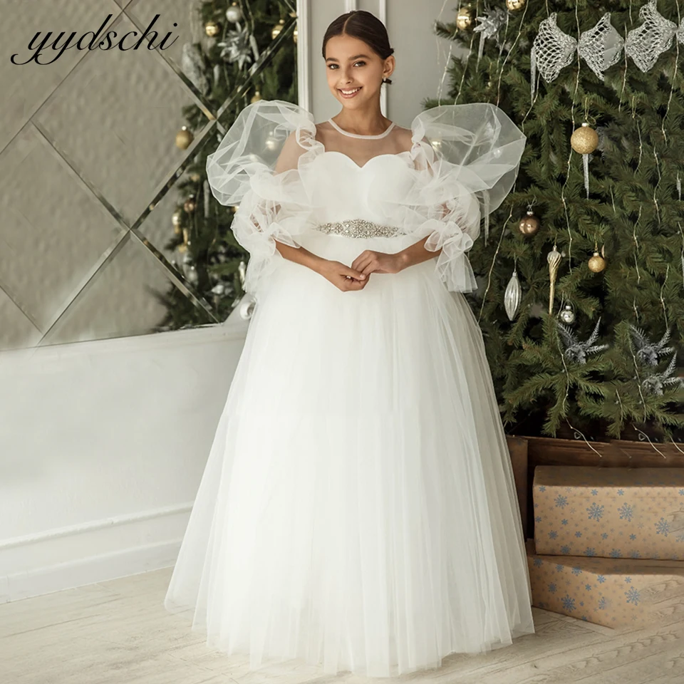 Customized Puffy Flower Girl Dresses For Wedding With Jewelry Belt 2025 A-Line Princess Birthday Party First Communion Gowns