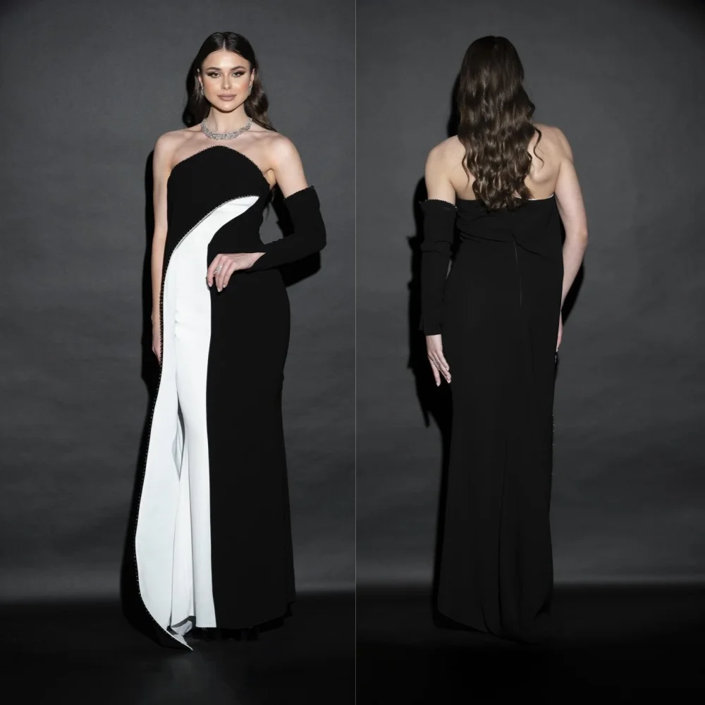 Customized Sparkle Exquisite Jersey Draped Pleat Ruched Clubbing A-line Strapless Bespoke Occasion Gown Long Dresses
