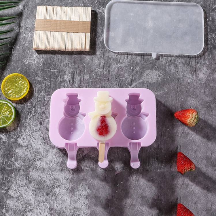 Cute cartoon silicone ice cream popsicle mold with lid&ice cream stick, style: snowman style, color randomly shipped