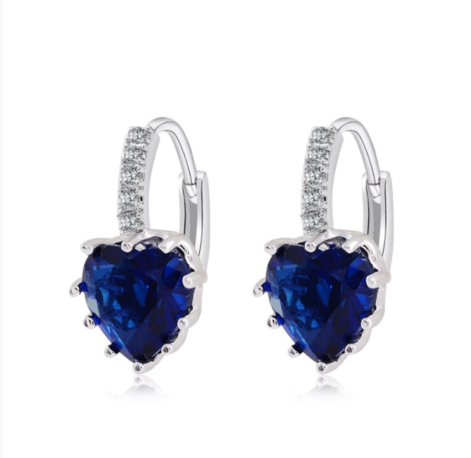 Cute heart-shaped cubic zirconia earrings in 925 sterling silver (color: white gold and dark blue)