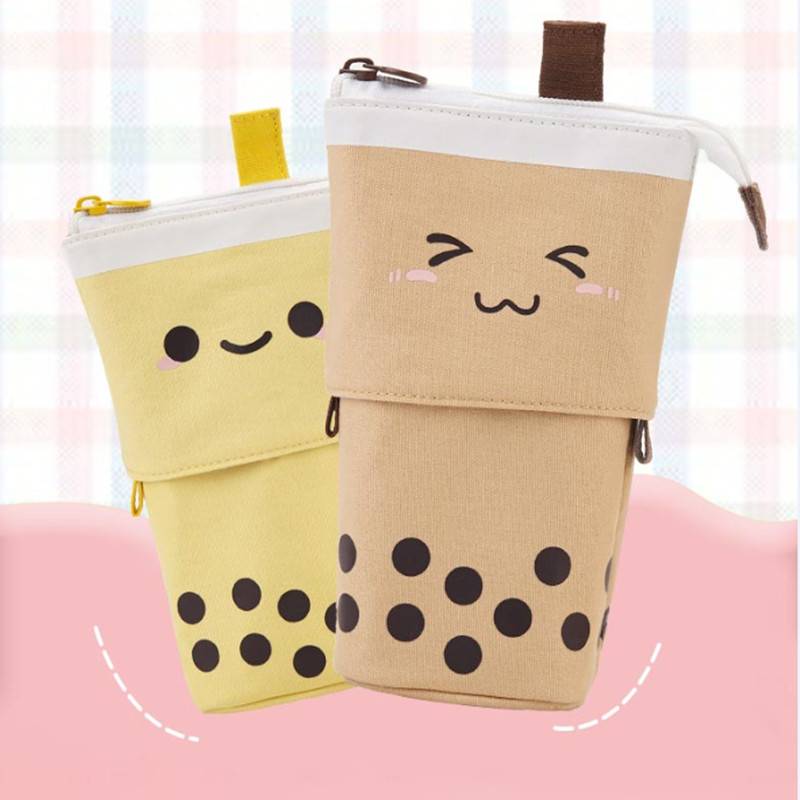 Cute milk tea drop-down pencil case student stationery storage large-capacity retractable pencil case pencil case