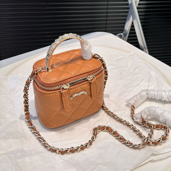 Designer bag Leather Makeup Bag Shoulder bag Crossbody Bag Vanity With Rhinestones Handle Chain quality saddle bag luxurys Handbags Zipper Cosmetic bag 11m