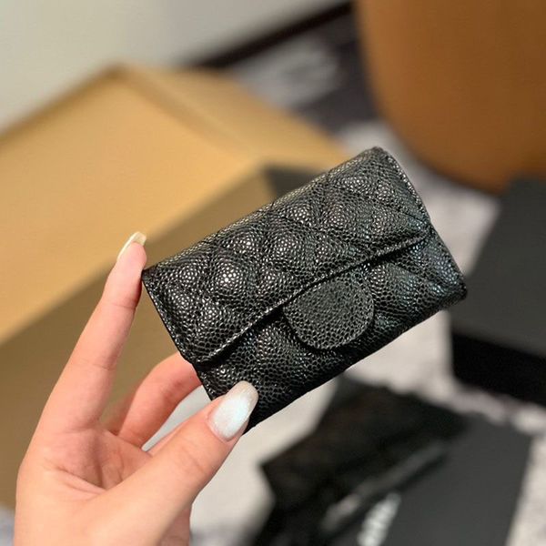 Designer bag Mini Wallets Black cowhide Caviar Leather Wallet Classic card holder Cowhide Handbags Classic Clutch Bags Luxurys Purse Card Women Ccredit card slot 9m