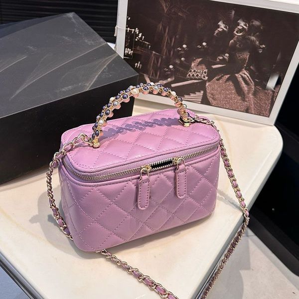Designer bag Pearl handle Makeup Bag Acrylic chain handle quality leather Crossbody Bag saddle bag luxurys Handbags Zipper cosmetic bag Messenger Bag 17m