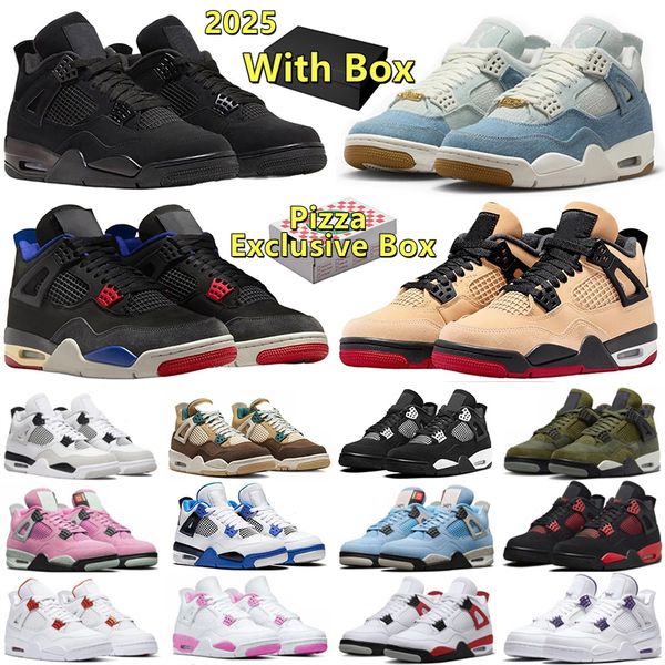 Designer Basketball Shoes 4 4s Sports Sneakers With Box Men 2025 Pizza Black Cat Worn Blue White Cement Thunder Forget Me Not Bred Reimagined Womens Trainers