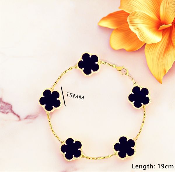 Designer Fashion Classic 4/4 Clover Charm Bracelet in Gold Goldstone and Mother of Pearl, Customization Available 01