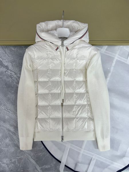 Designer Mens Winter Down Jacket Parkas Luxury Man Hooded Puffer Cropped Puffer Jacket Wool Sleeve Mens Patchwork Hooded Knitted Down Jacket
