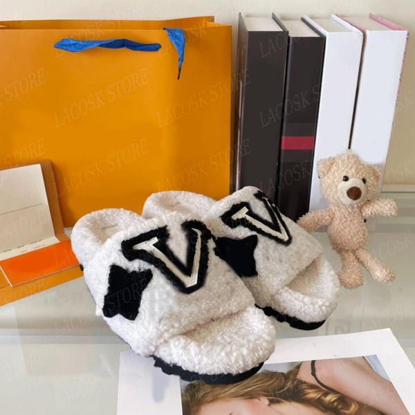Designer Slippers Women Lamb Wool Sandals Warm Comfort Thick Platform Shoe Autumn Winter Plush Slide Girls Slipper with Box EU35-42