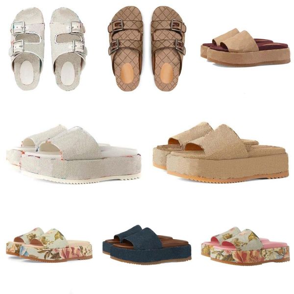 Designer Slippers Womens Summer Sandals Fashion Canvas Flat Mules Platform High Heel Sandal Platform Sliders Shoes