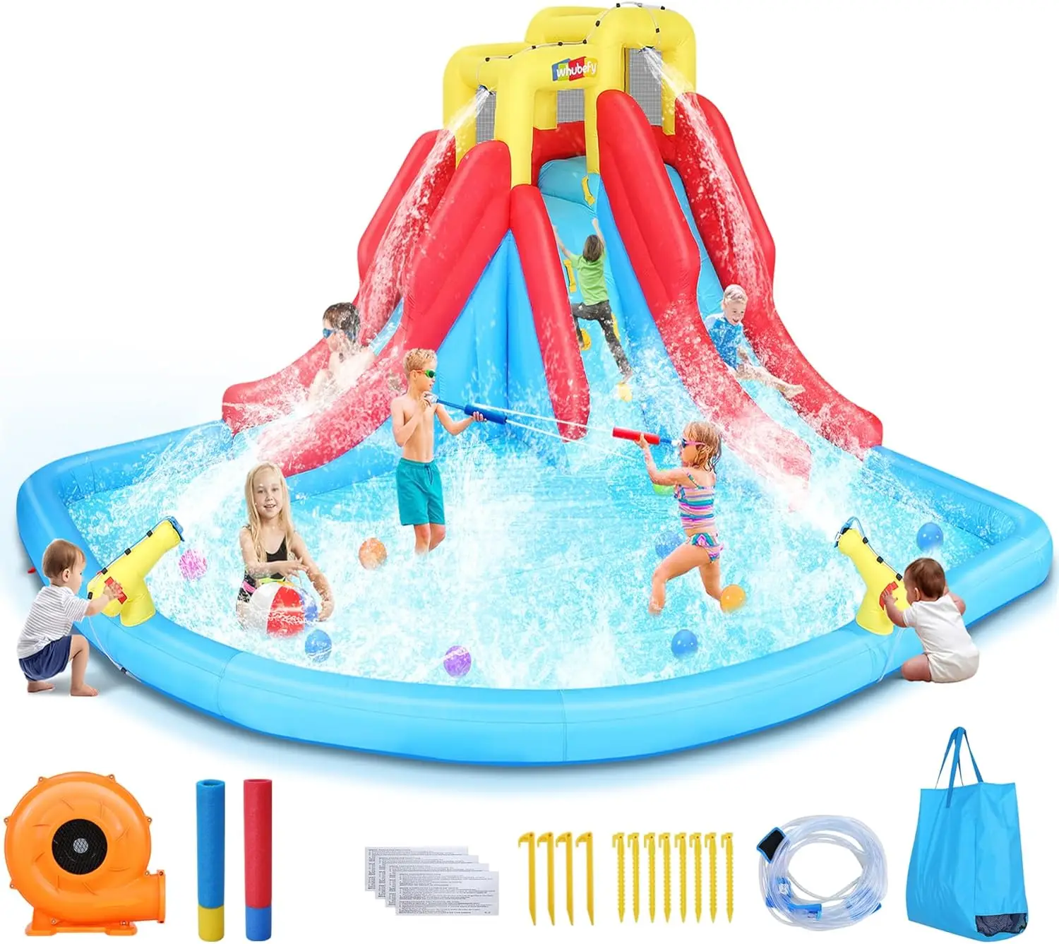 Double Drench Inflatable Water Slide 14.5 x 12.7 x 7.5 FT – Mega Water Park with Blower & Water Squirters, Heavy-Duty for Backya