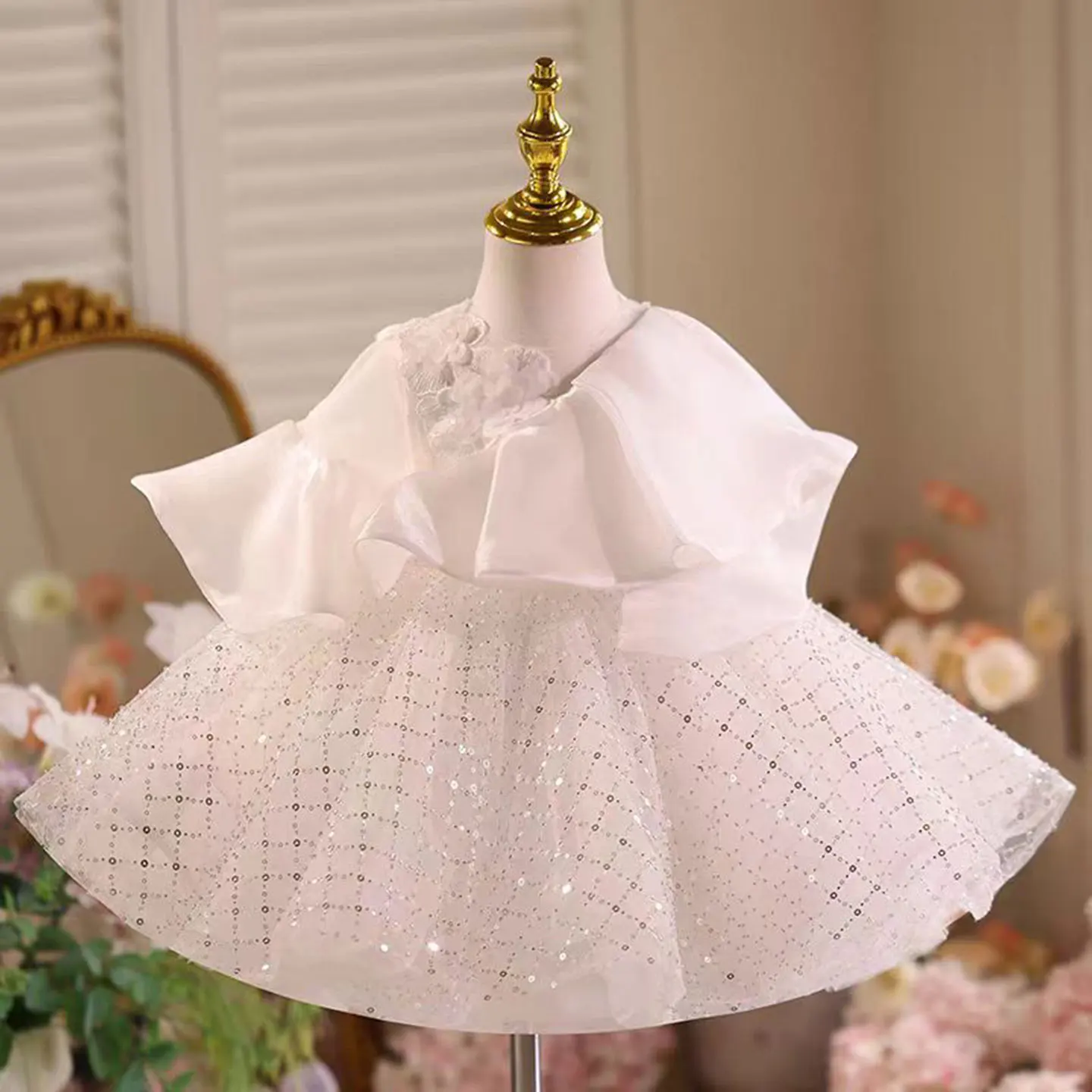 Dreamy Vow Adorable Ruffle Sequined Tulle White Girl Princess Dress Cap Sleeve Wedding Evening Party First Communion Prom D029