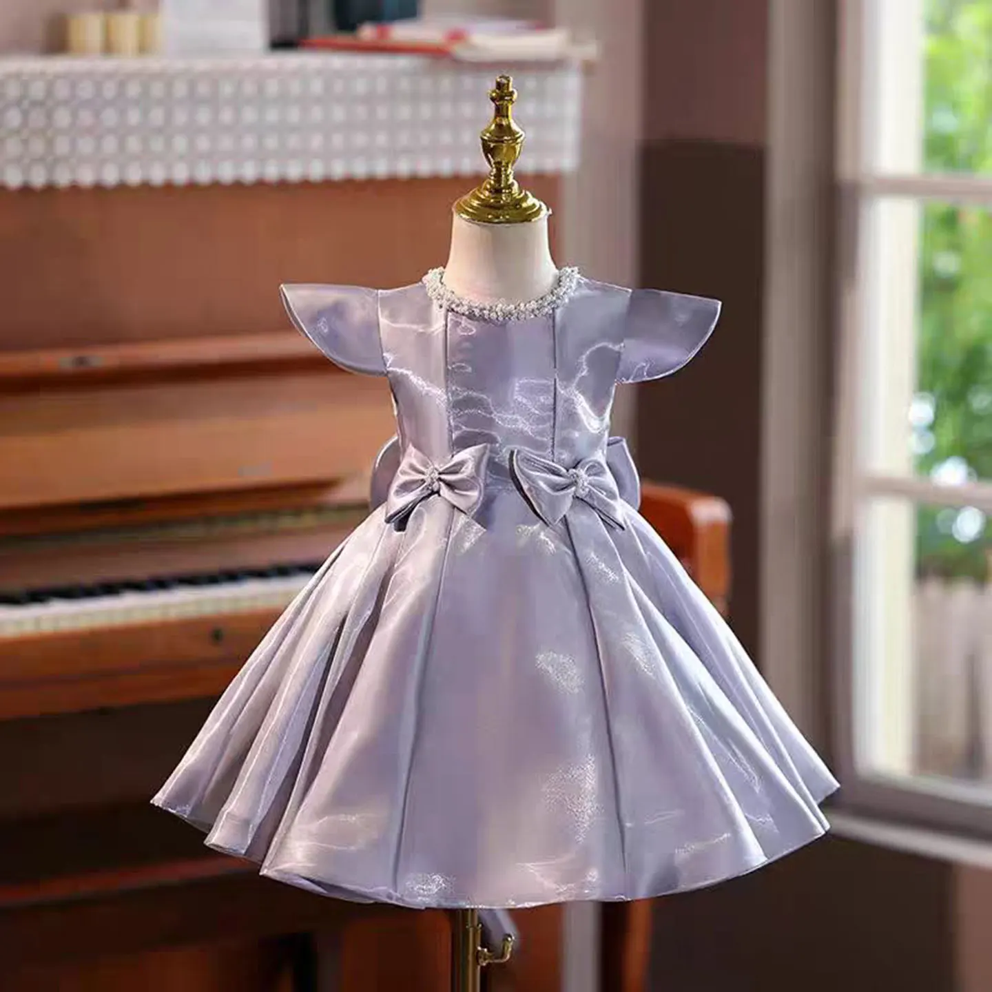 Dreamy Vow Elegant Purple Baby Girl Dress With Bow Satin for Kids Wedding Birthday Party Spring Knee Length Ball Gown J764