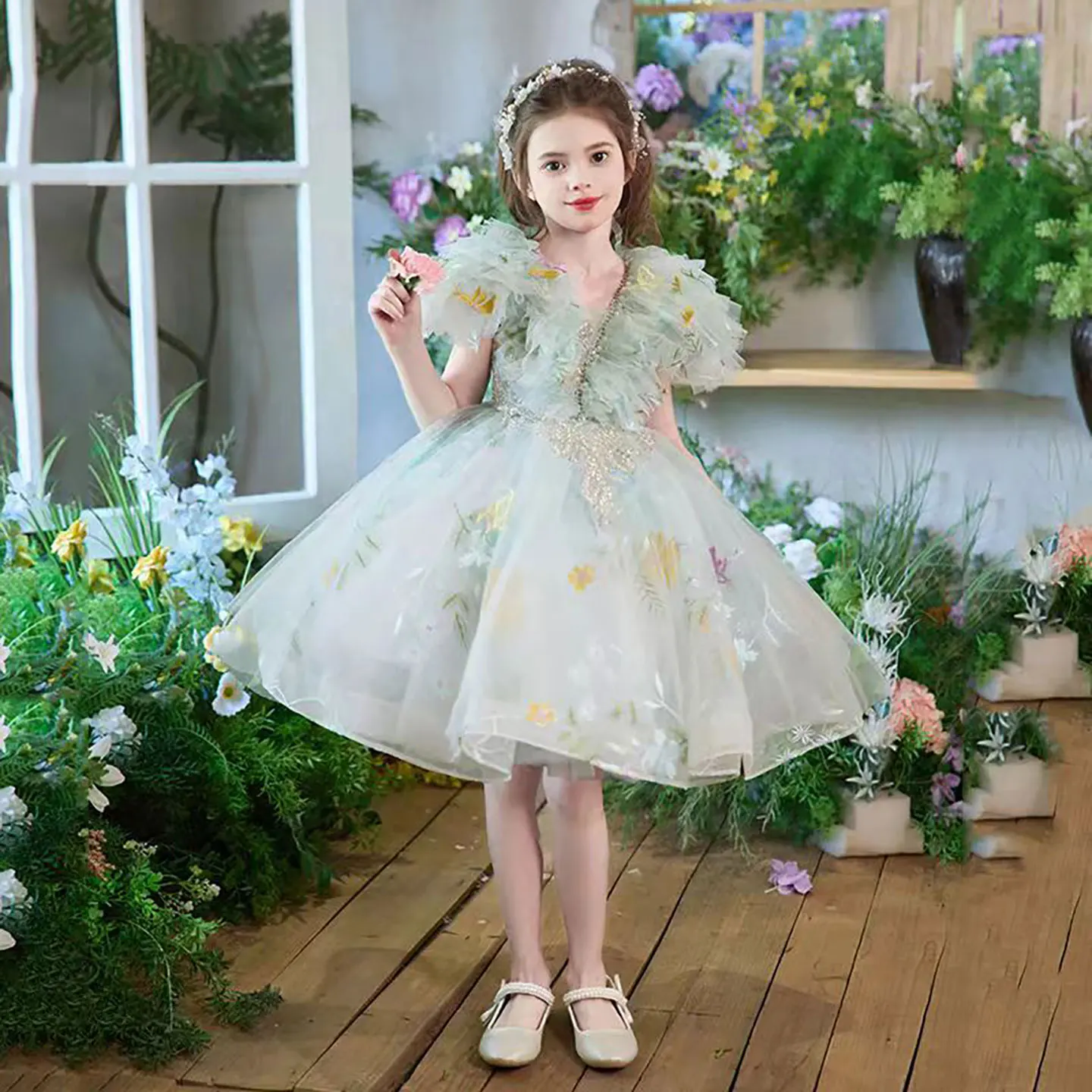 Description: Introducing the Dreamy VoW EleGanT V-Neck Applique Beading Tulle Light Green Flower Girl DresS Short Sleeve Kid’s Wedding Evening Party Prom D034, a beautifully designed and perfectly crafted apparel piece that will instantly elevate your wardrobe game. Featuring an elegant and timeless design, this sleeveless dress is perfect for any occasion. Whether you’re hitting the town with your girlfriends or celebrating at your best friend’s wedding, this gown will never fail to impress. Made of lightweight, flowy fabric that’s both breathable and comfortable, it’ll keep you cool even on the hottest days. The V-neck design gives you a stylish yet modest look while the applique beading adds some extra charm to this unique piece. With its sophisticated color palette of light green, floral prints, and delicate beads that add intricate detailing to the dress, there’s no denying how eye-catching this piece is. It’s a must-have for any occasion that demands an elegant touch. Style it up with statement earrings or gladiator sandals for an evening out or pair with a pair of ballet flats for a casual outfit. The versatility of this dress will make it your go-to pick every time you want to step outside of the box. So, what are you waiting for? Hit the streets in style and flaunt this Dreamy VoW EleGanT V-Neck Applique Beading Tulle Light Green Flower Girl DresS Short Sleeve Kid’s Wedding Evening Party Prom D034 today!