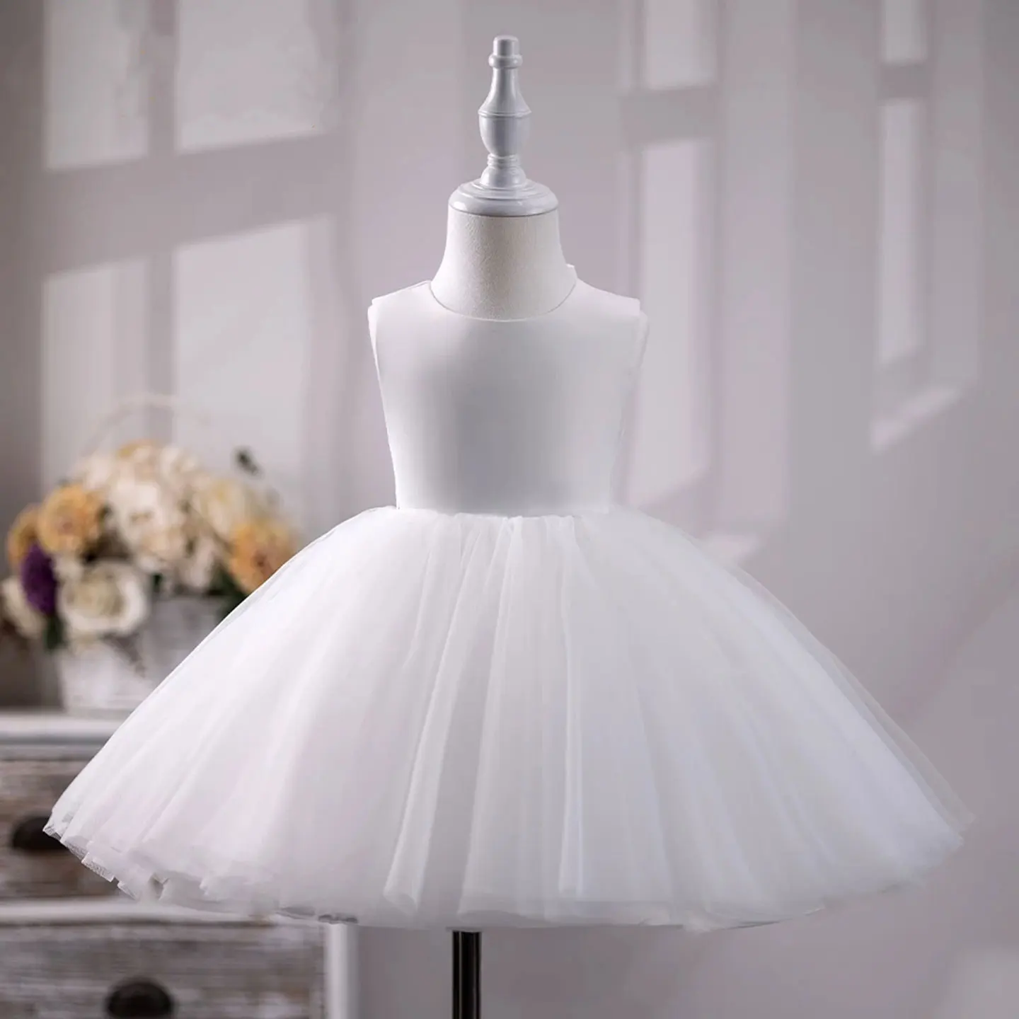 Dreamy Vow Elegant White Baby Girl Dress Classic Sleeveless for Kids Birthday Party Ball Gown J705