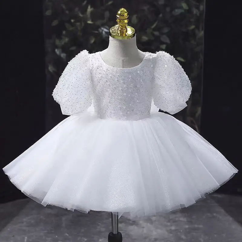 Dreamy Vow Elegant White Girl Dress Bowed for Kids 1st Birthday Toddler Wedding Holiday Party Spring Summer Short Ball Gown J735