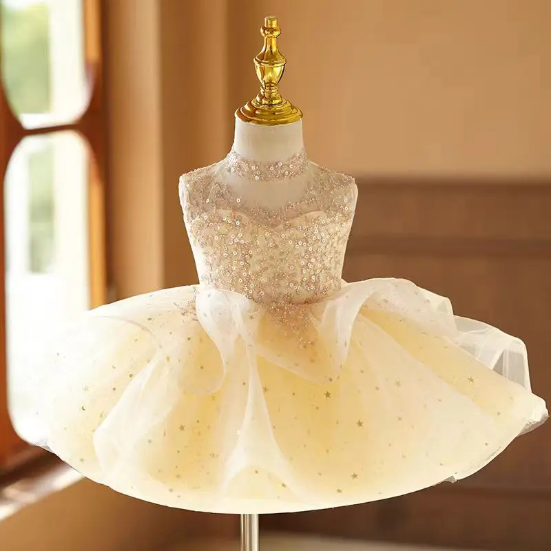 Dreamy Vow Fashion Baby Girl Dress Sleeveless Sequined for Kids 1st Birthday Holiday Party Princess Knee Length Ball Gown J732