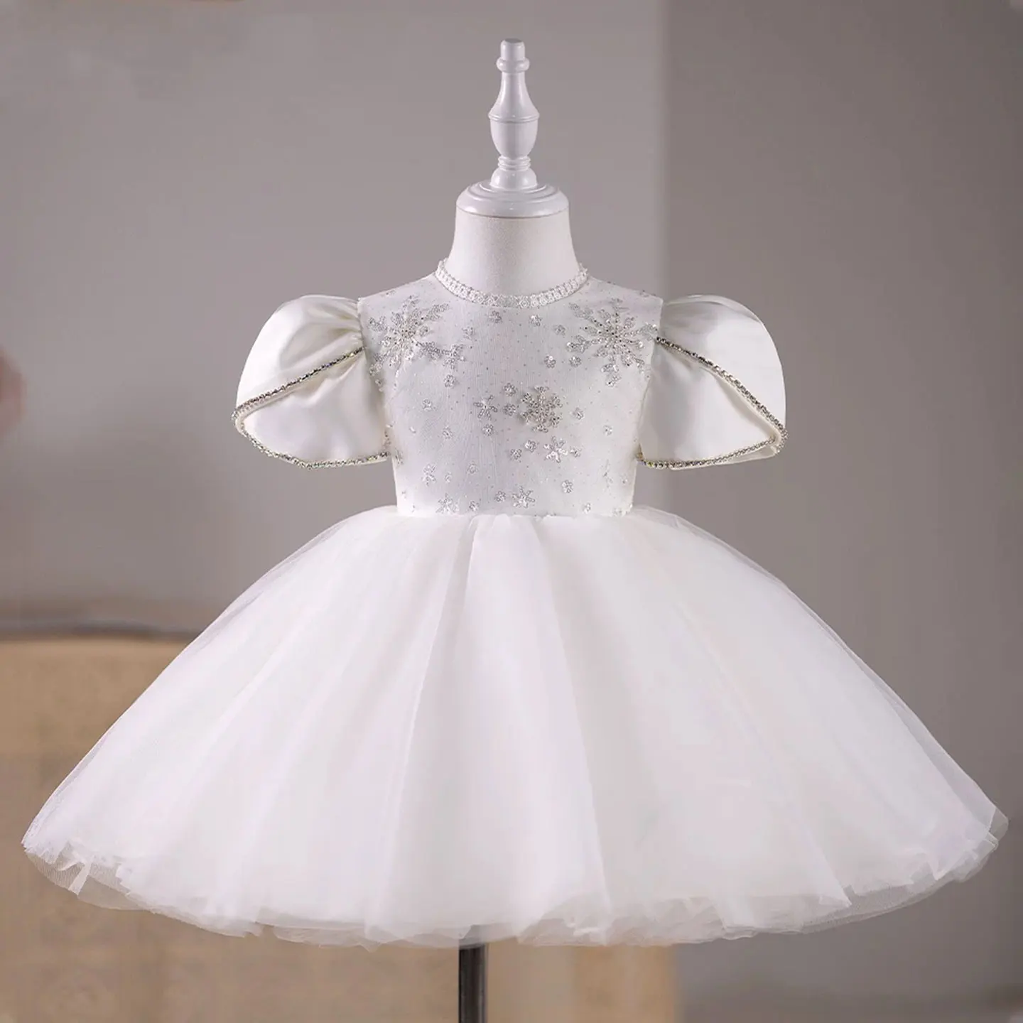 Dreamy Vow Gorgeous White Baby Girl Dress Exquisite Embellished Short-Sleeved Spring Birthday Holiday Ball Gown J704