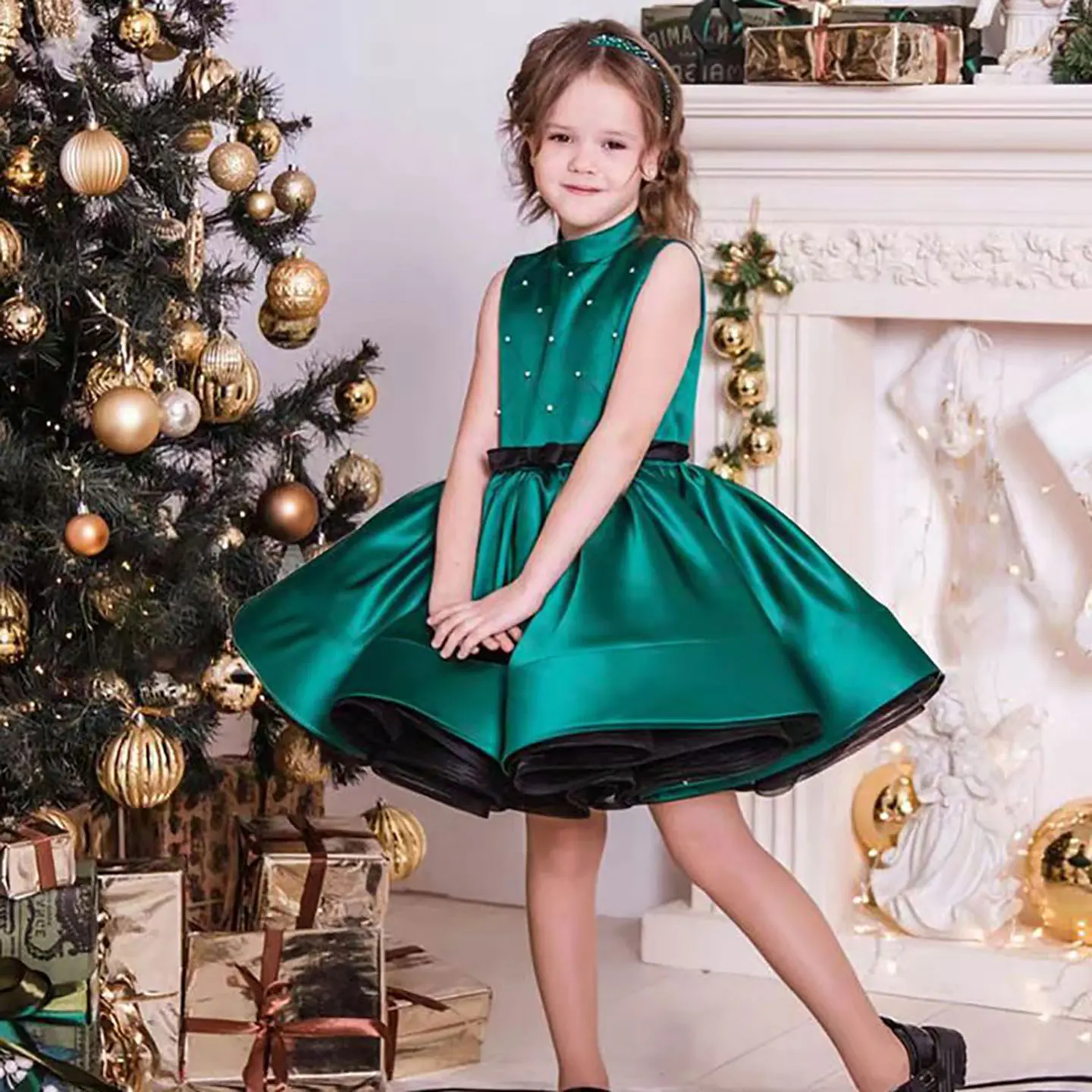 Dreamy Vow Graceful Halter Sleeveless Satin Flower Girl Dress Wedding Birthday Party Holiday Celebration Short Ball Gown D057