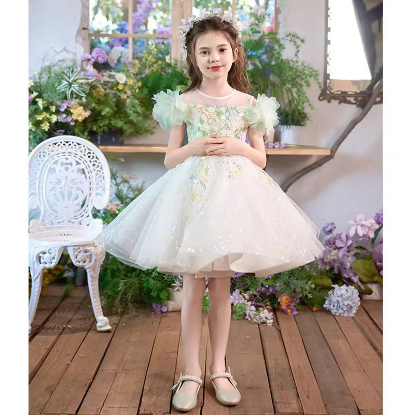 Dreamy Vow Graceful O-Neck Embroidered Butterfly Tulle Green Flower Girl Dress Wedding Birthday Evening Party Holiday Prom J513