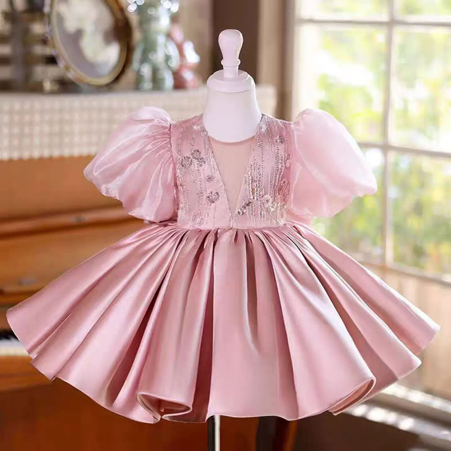 Dreamy Vow Graceful Scoop Neck Sequined Satin Flower Baby Girl Dress with Bow for Kids Wedding Birthday Party Ball Gown J827