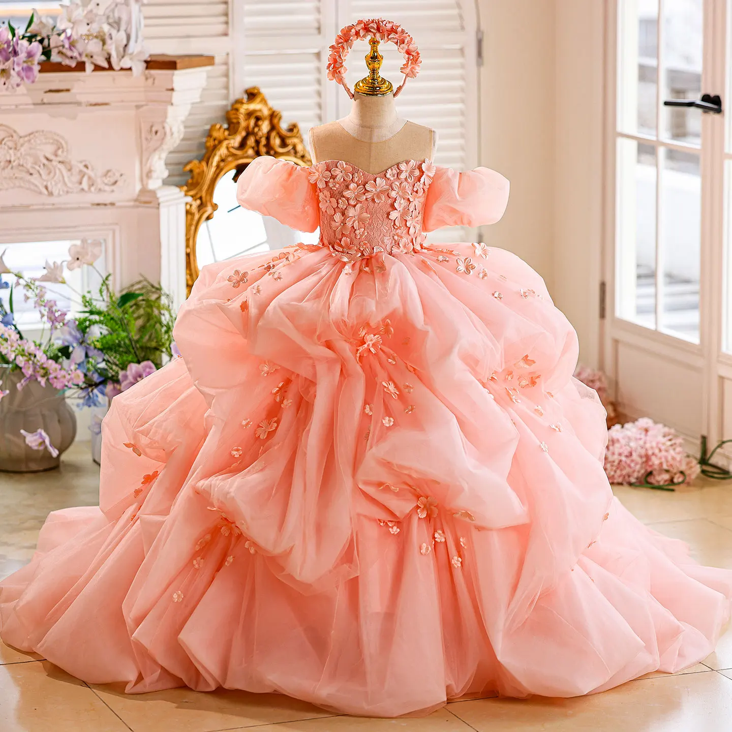 Dreamy Vow J855 Luxury Pleat Off Shoulder Applique Pink Girl Princess Dress Wedding Evening Party Pageant Floor-Length Prom 2025
