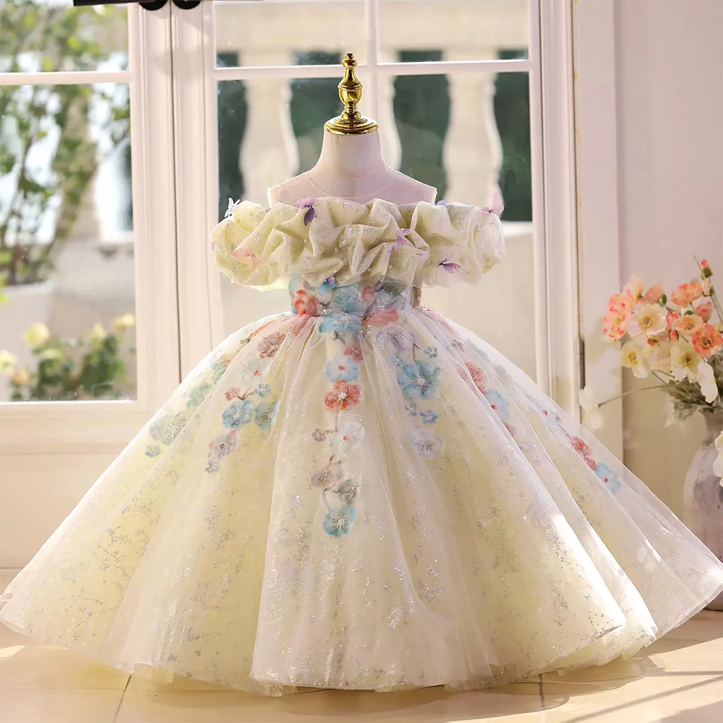 Dreamy Vow Strapless Pearl Sequin Flower Girl Dress Children’s Wedding Party Festival Celebration Dance Dress With Flower D124