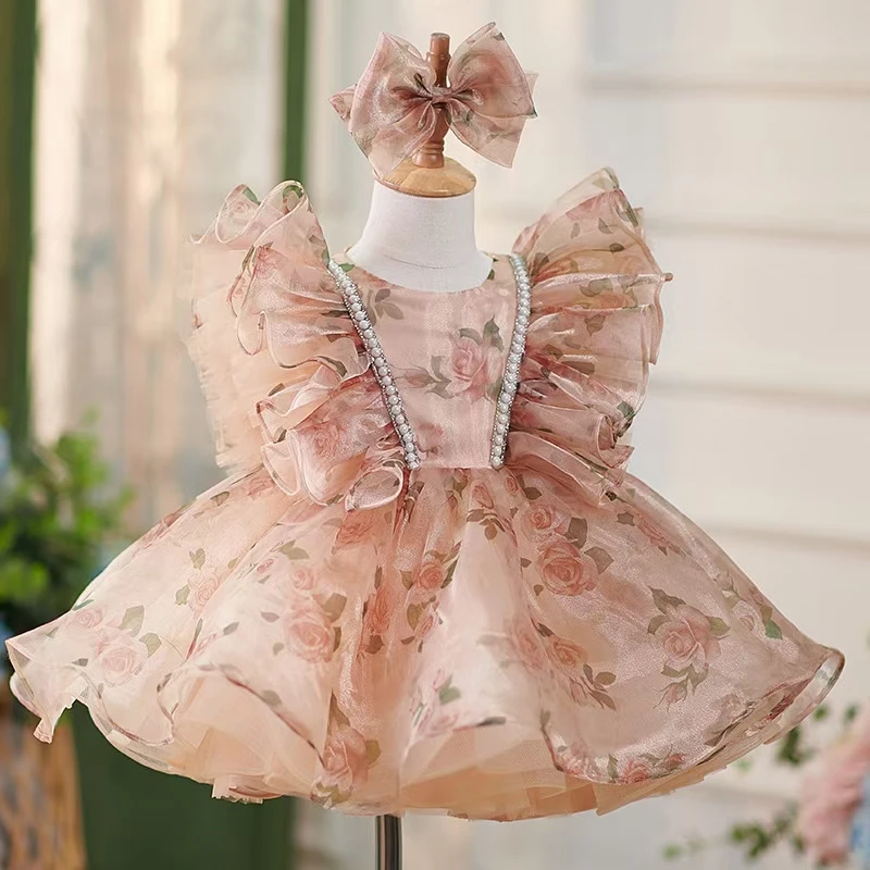 Dreamy Vow Stunning Champagne Girl Dress Tulle for Kids 1st Toddler Birthday Party Autumn Winter Knee Length Ball Gown J225