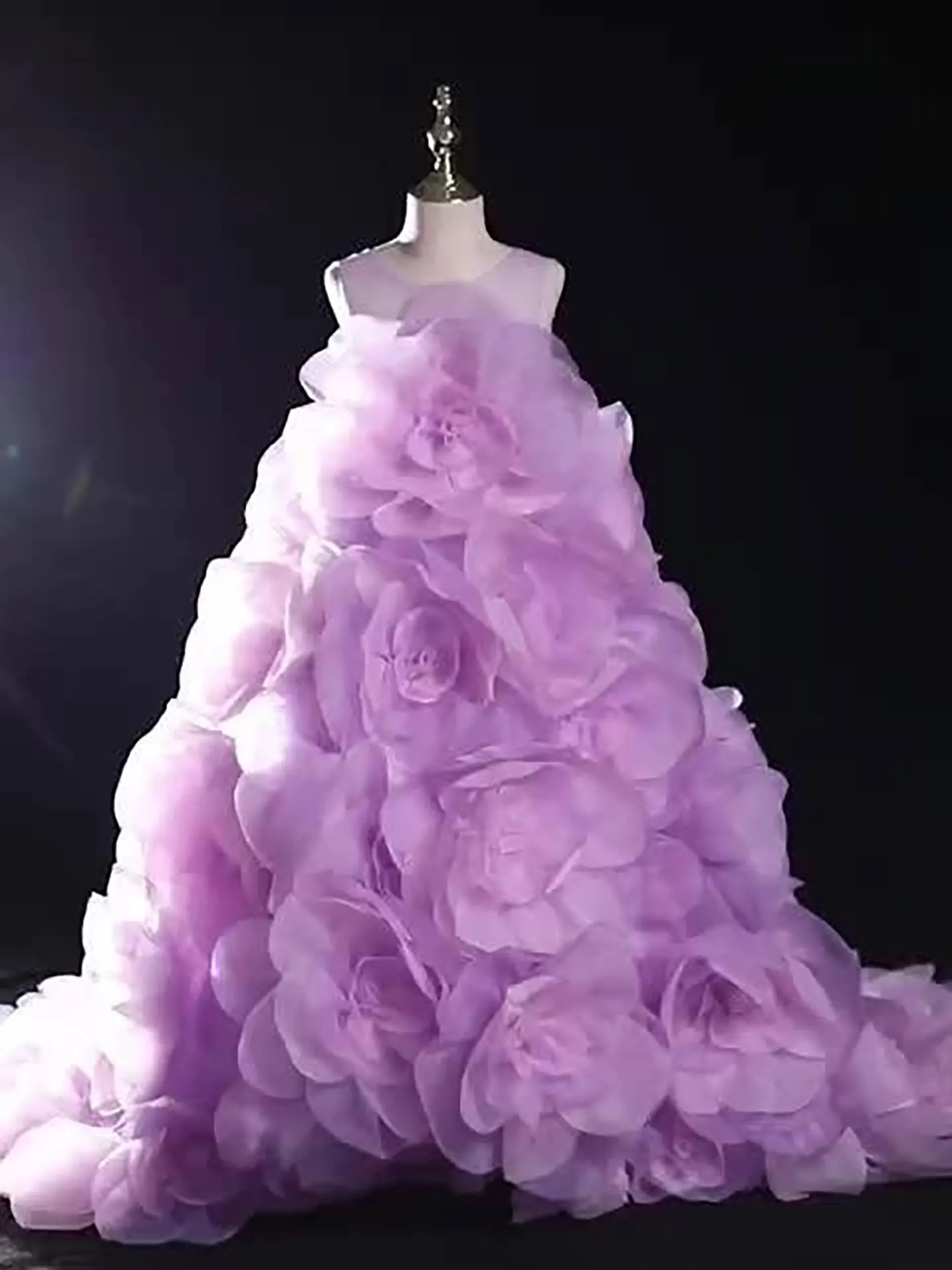 Dreamy Vow Stunning O-Neck A-Line Sleeveless Flower-Adorned Girl Long Dress Kid Wedding Birthday Holiday Pageant Party Prom J201
