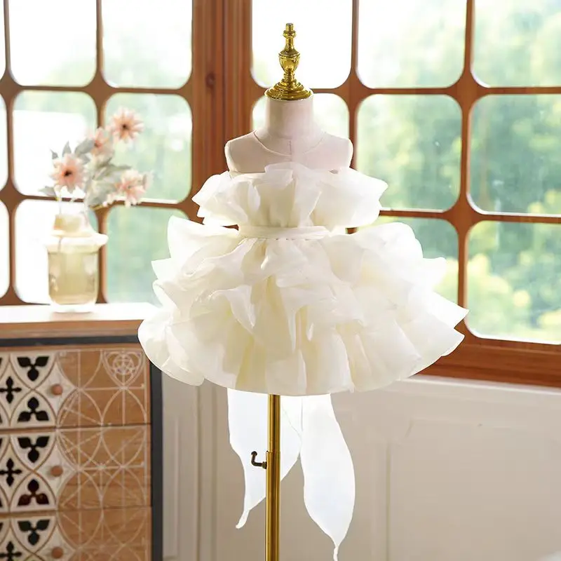 Dreamy Vow Stylish White Black Baby Girl Dress for Kids 1st Toddler Birthday Holiday Party Princess Knee Length Ball Gown J731