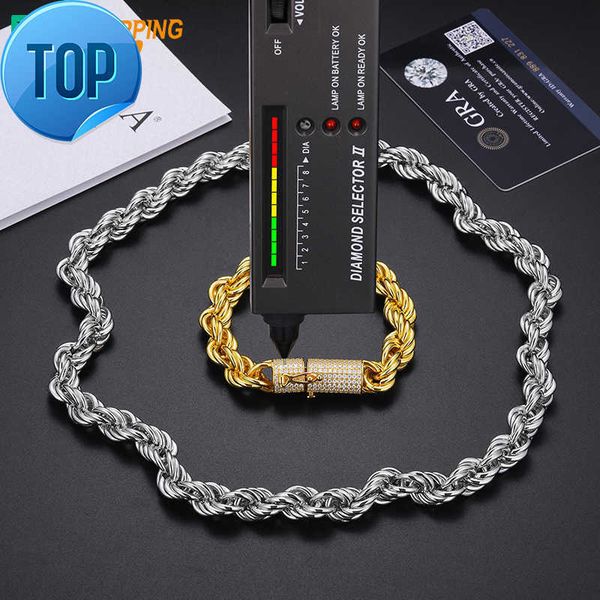 Dropshipping 6mm 12mm 18K Gold Plated 925 Sterling Silver VVS Moissanite Diamond Iced Out Clasp Rope Chain Necklace For Men