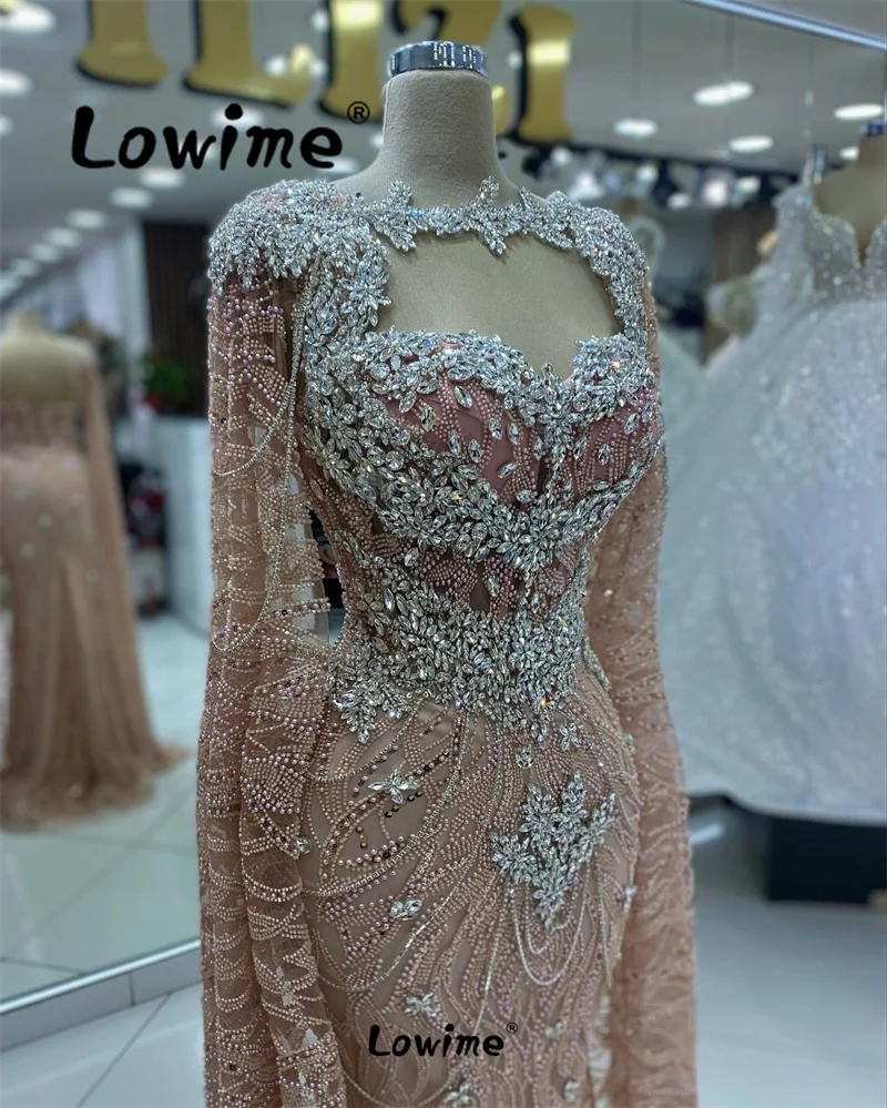 Item: Dubai Arabic Pink Evening Dress Cape Sleeve Long Luxury Prom Gowns Custom Made Plus Size Mermaid Party Dresses For Weddings Robe