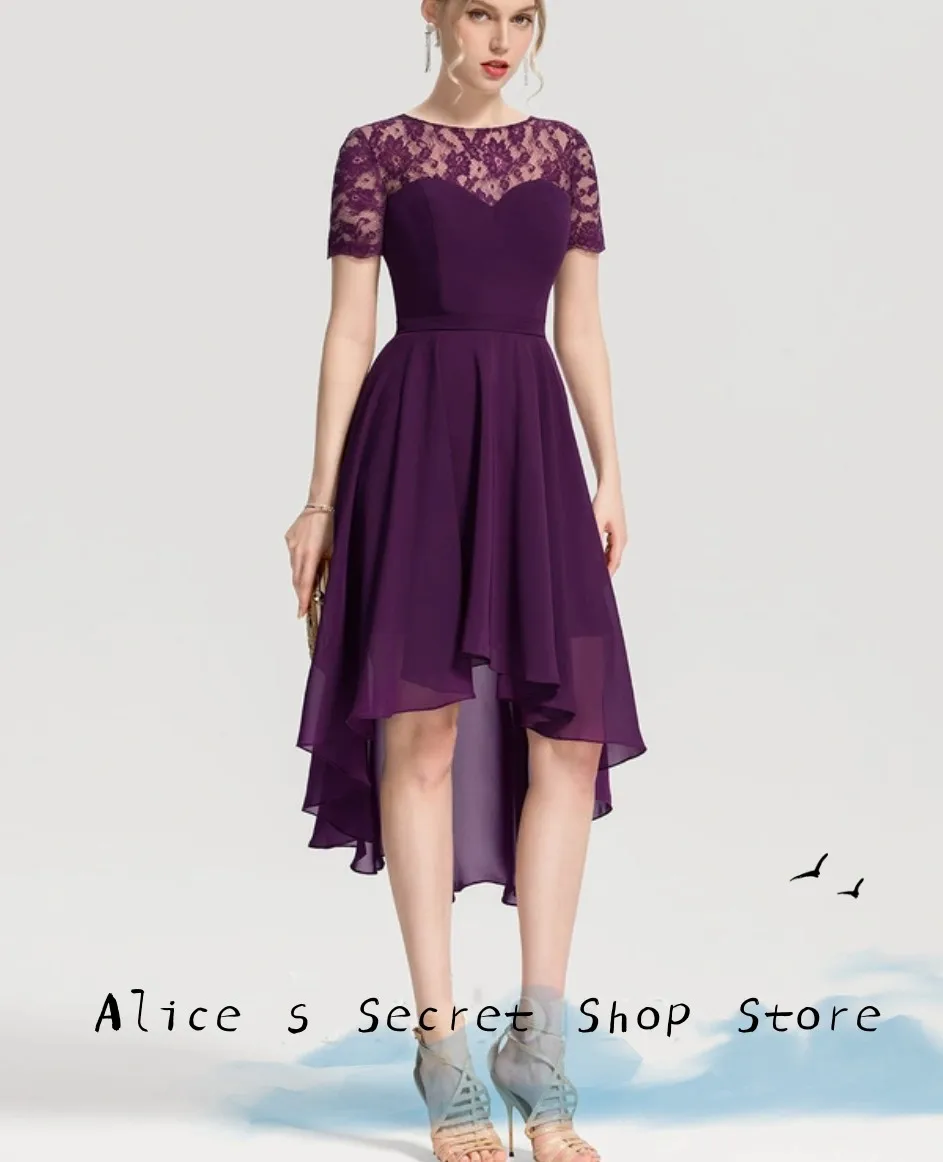 Elegance Purple Tulle Mother of the Bride Dress O-Neck With Exquisite Appliques Knee Length Wedding Party Dress Customized