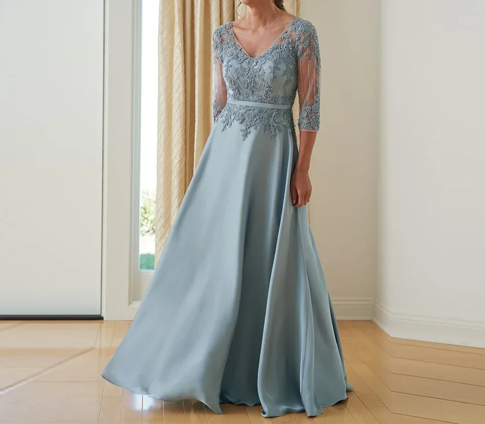 Elegant 3/4 Sleeves V-neck Appliques Lace Evening Prom Gown For Wedding Party Mother Of Bride Dress Women Customized