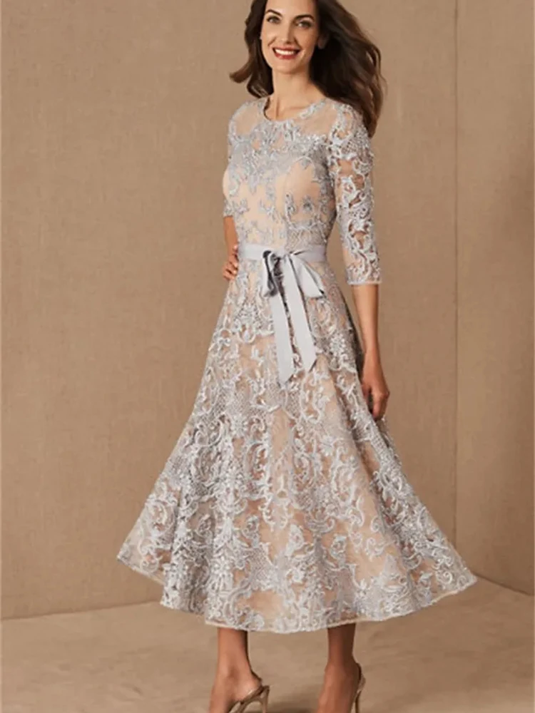 Elegant A-Line Ankle-length Half-sleeve Mother of the Bride Dress Special Occasion Formal Party Wedding Customized